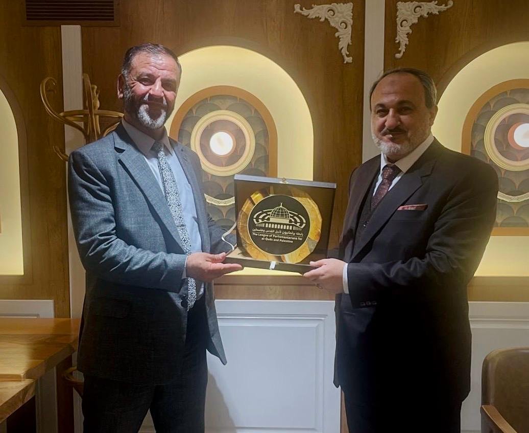 التقى الأمين العام لرابطة برلمانيون لأجل القدس وفلسطين، الدكتور محمد مكرم بلعاوي، بالنائب في مجلس النواب الأردني باسم الروابدة، لبحث سبل تعزيز العمل البرلماني المشترك دعمًا للقضية الفلسطينية، وتطوير آليات التنسيق بين الرابطة والبرلمان الأردني في هذه المرحلة الدقيقة التي تمر بها فلسطين.